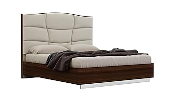 American Eagle Furniture Fernley Modern Platform Bed With Upholstered Headboard King Walnut