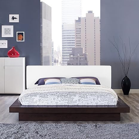 Modway Freja Upholstered Cappuccino White Faux Leather Modern Platform Bed With Wood Slat Support In Queen